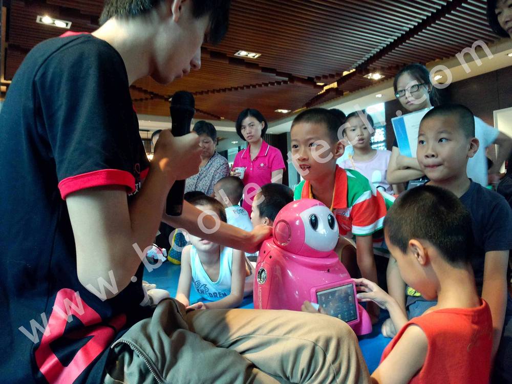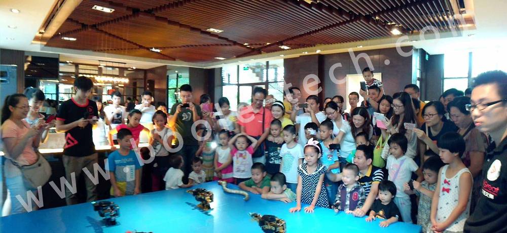 而最精彩的莫過于機器人跳舞,機器人部隊整裝待發,在工作人員的指揮下,隨著音樂的響起整齊得跳起舞蹈來,惹得眾多小朋友驚喜歡呼。