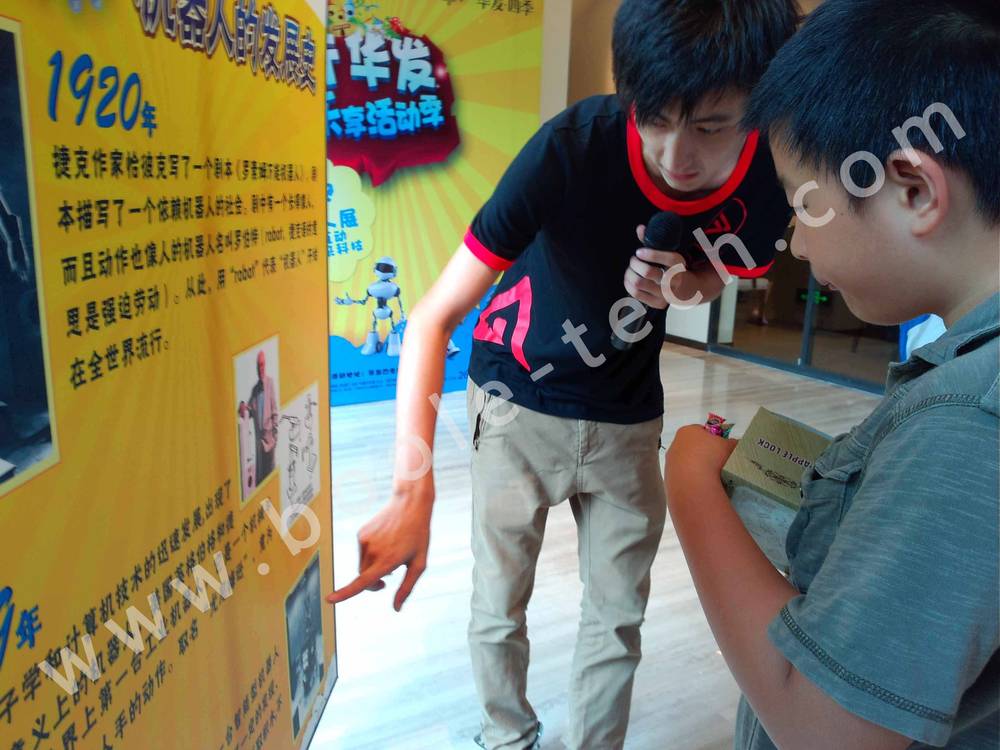 據了解,此次活動內容精彩紛呈,現場設置了圖片展示區,讓小朋友更加直觀清楚地了解機器人的發展史。