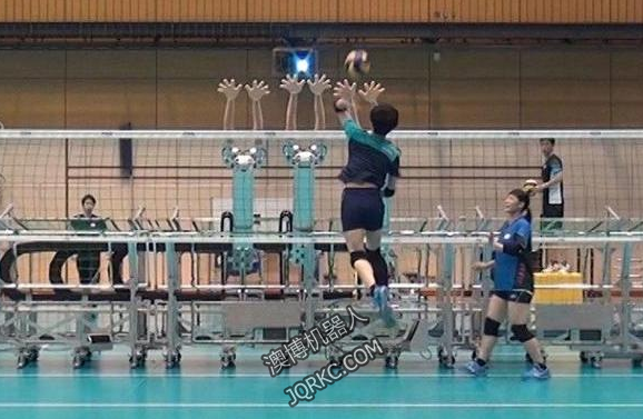 這組機器人是利用滑軌架在網子另一邊,3 對“手臂”可根據不同訓練目的設定,模擬對手不同的隊形變化。